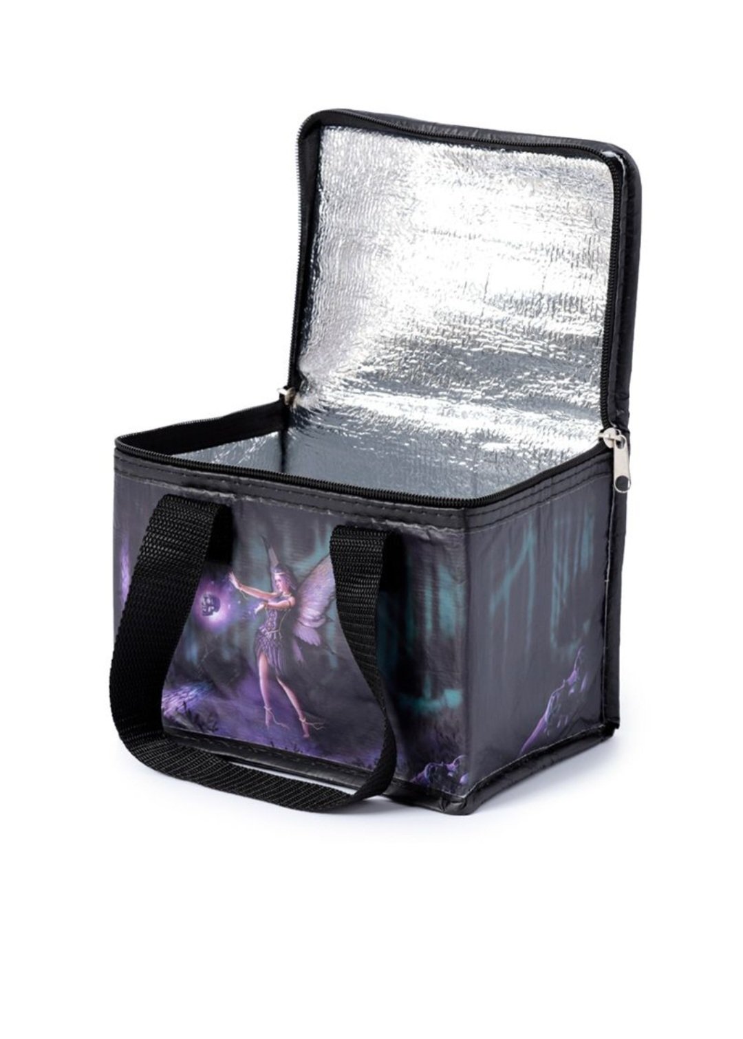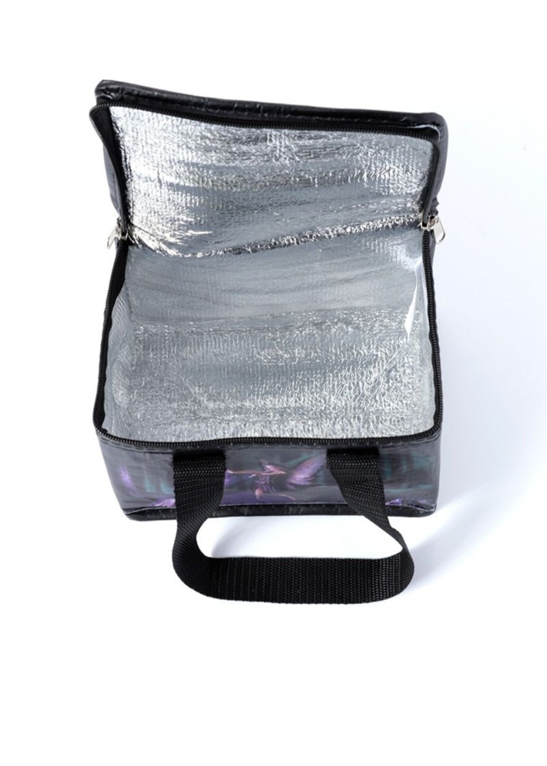 Vetoketjulla suljettava pieni kylmälaukku kahdella kahvalla.