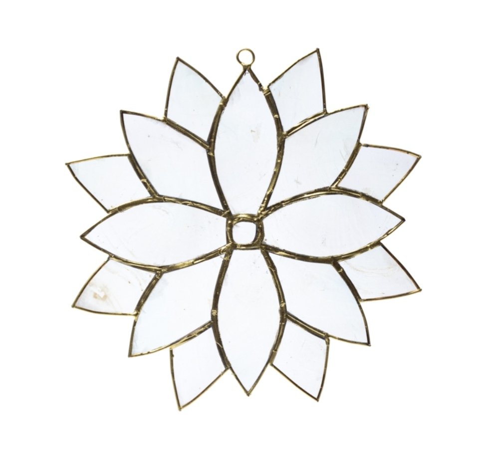 Koristeellinen lootuksen muotoinen ikkunakoriste, joka on valmistettu luonnollisesta Capiz-simpukasta.