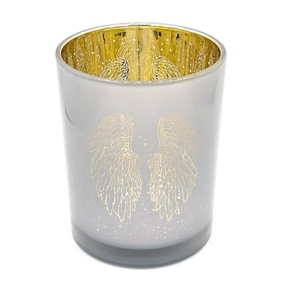 Vaalea kullanhohtoinen kynttilänjalka tuikuille tai ledeille.