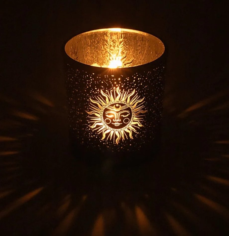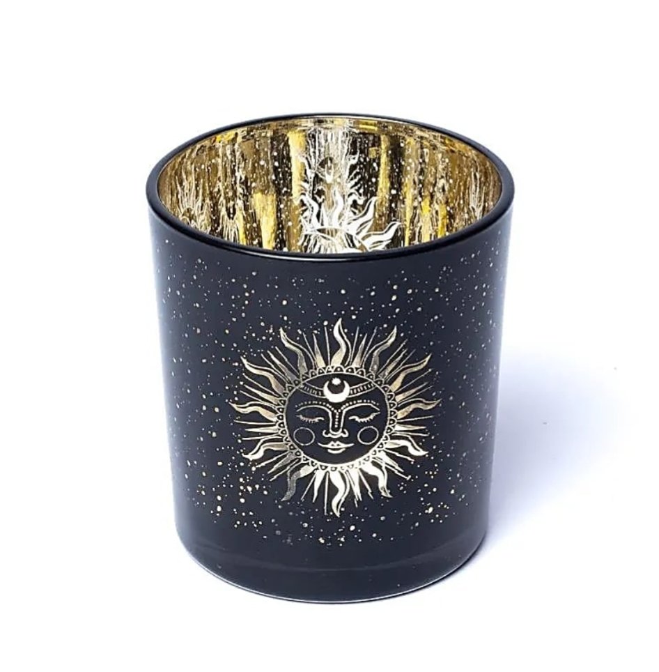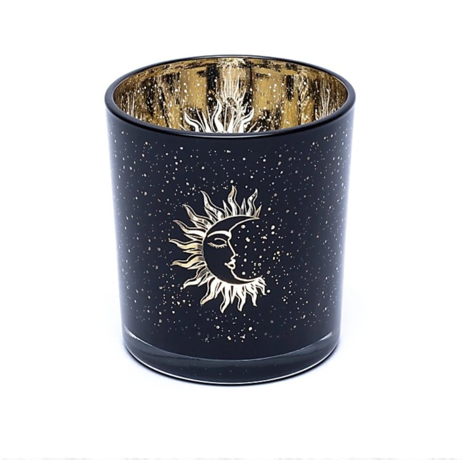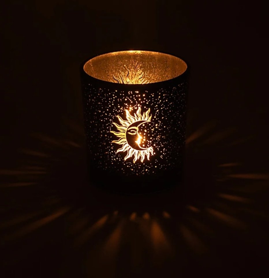 Kaunis pieni lasinen sun and moon tuikkuastia.