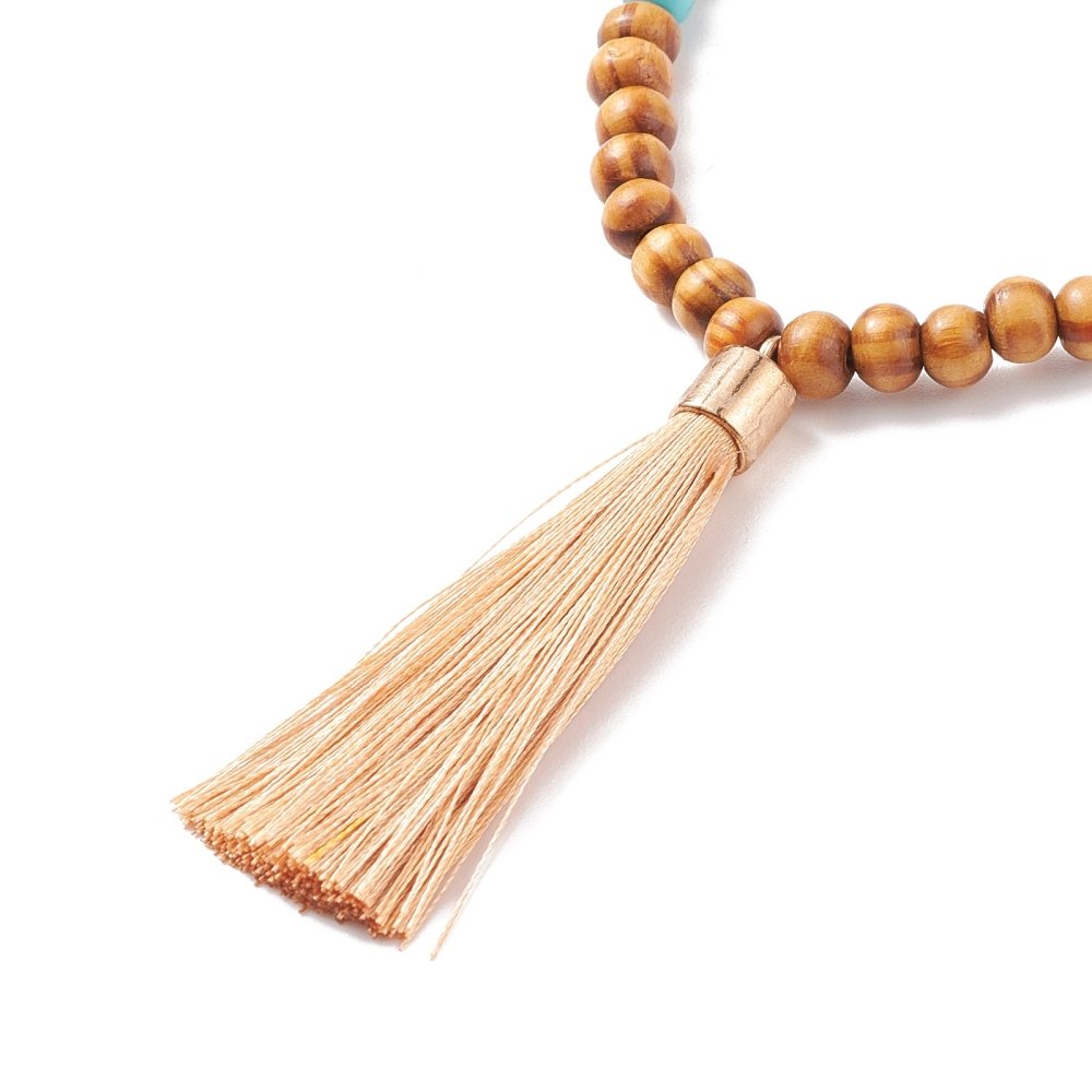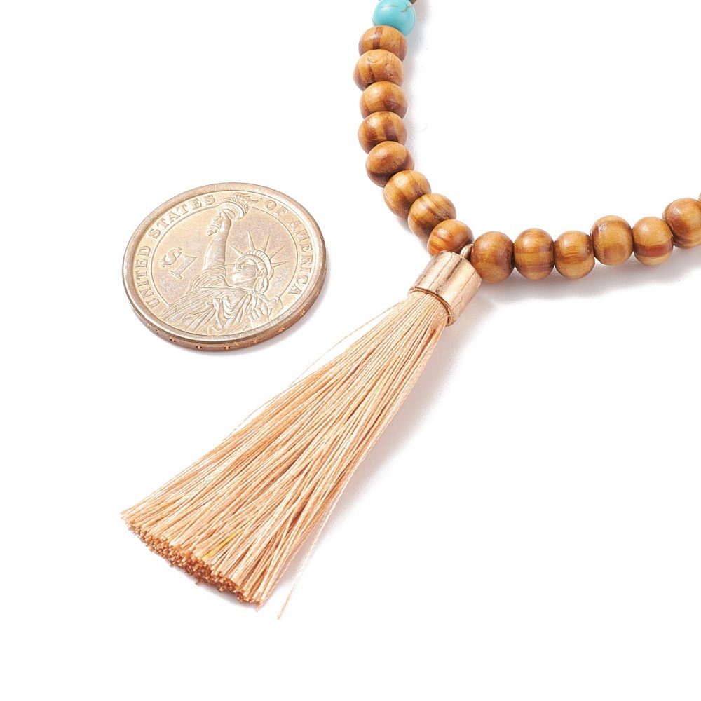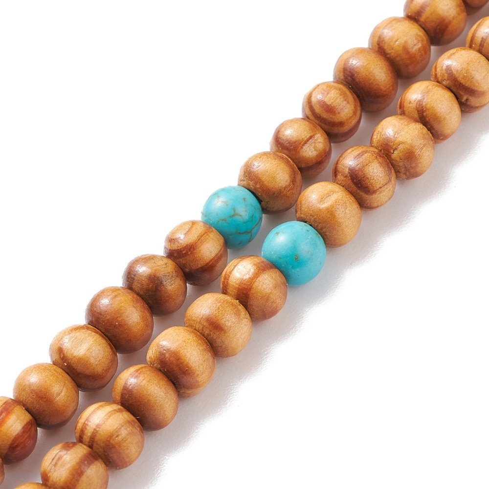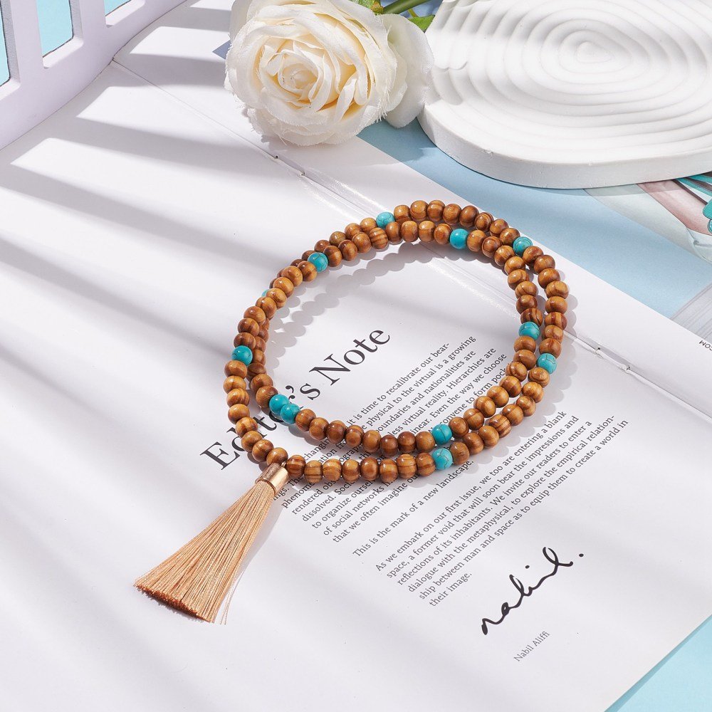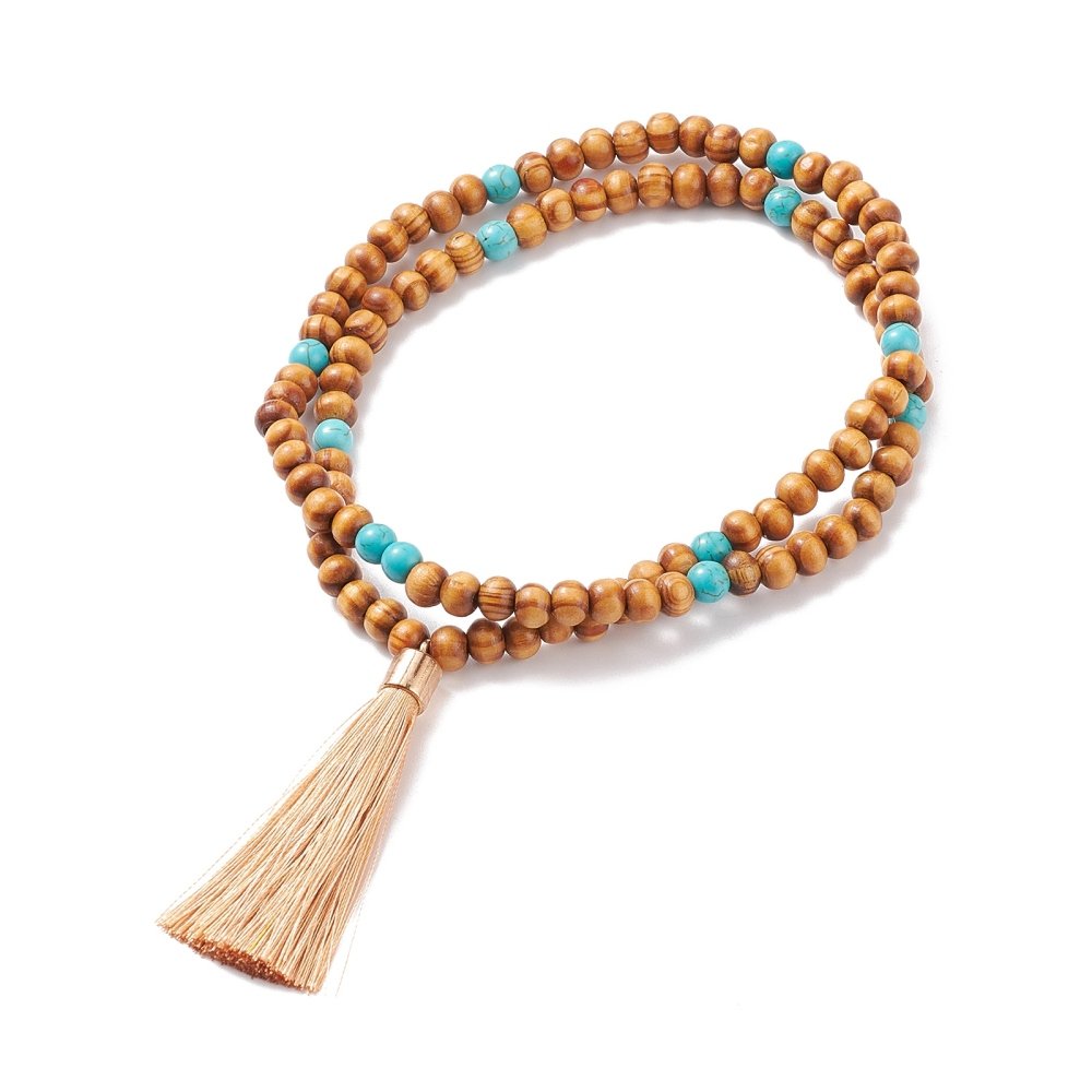 Puiset mala/rukoushelmet. Pituus 54cm Vaaleanruskeat burly puuhelmet ja synteettinen turkoosi helmi 6mm. Vaalea tasseli 55mm x 25mm. Nämä on hieman lyhyemmät rukoushelmet. Voi käyttää myös rannekoruna, menee kolme kertaa ranteen ympärille.
