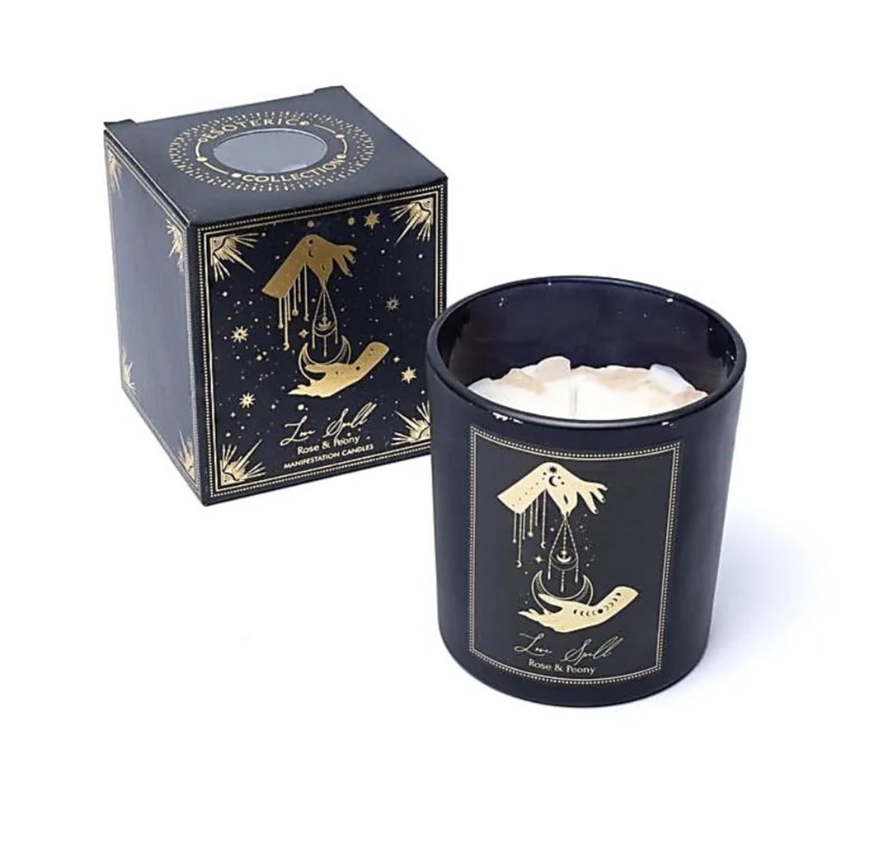 Ruusun ja pionin tuoksuinen manifestointikynttilä.