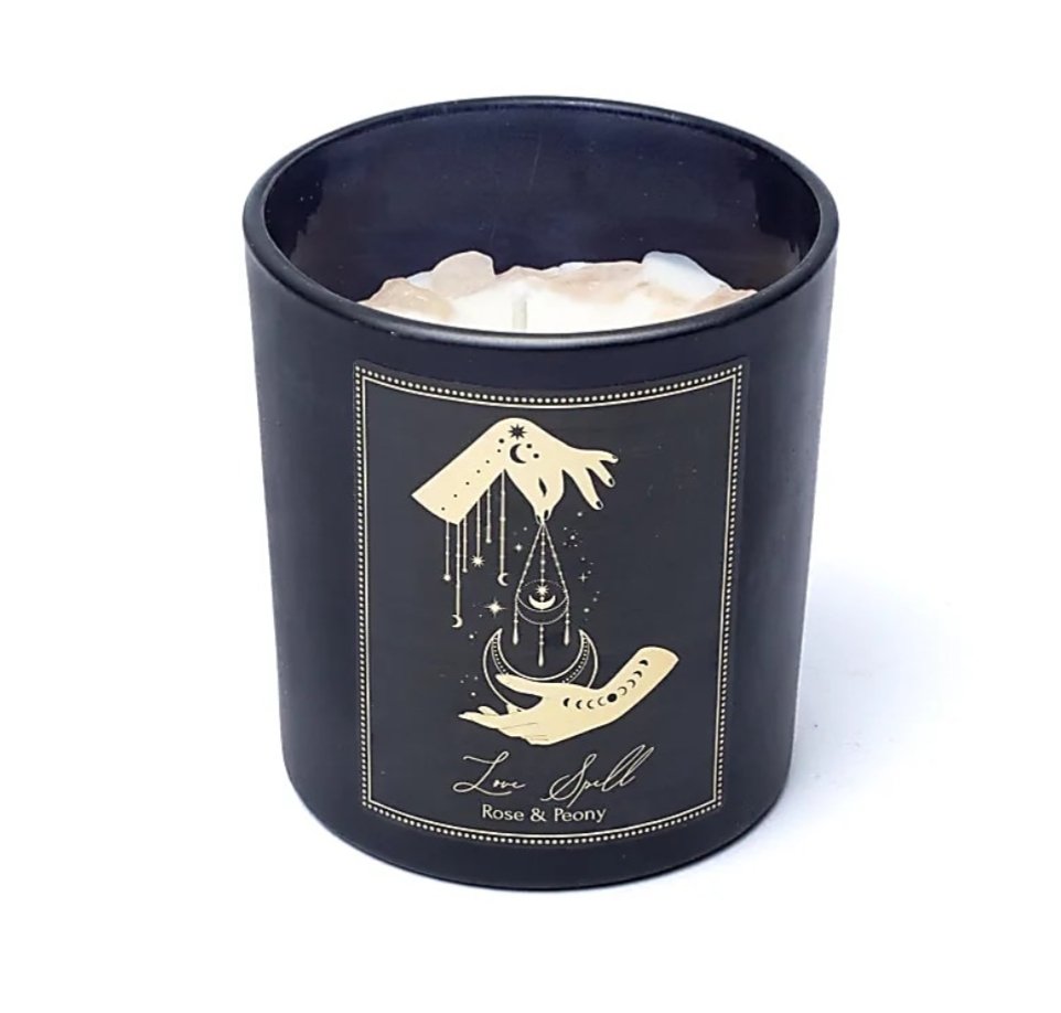 Sisältää eteerisiä öljyjä ja jalokiviä. Kynttilän palaessa jalokivet uppoavat vahan mukana. Kun kynttilä on palanut loppuun, voit säilyttää jalokivet.