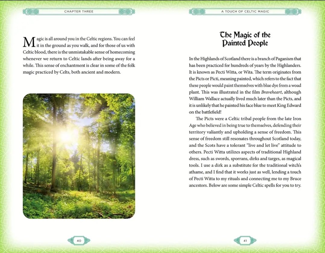 Kelttiläisen ja skotlantilaisen kirjailijan Marie Brucen kirjoittama kirja kaivautuu kelttiläisen kulttuurin sydämestä ammennettuihin historian, myytin ja taian säikeisiin ja kutoo ne yhteen käytännölliseksi oppaaksi nykyaikaiseen loitsutaitoon. Kirjan sisältä löydät kiehtovan kelttiläisen taian historian sekä loitsuja, joita voit kokeilla kotona mukana tulevien oraakkelikorttien avulla.