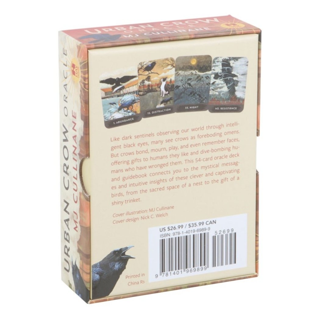 MJ Cullinanen Urban Crow -oraakkelikorttipakka sisältää 54 kortin pakan ja englanninkielisen opaskirjan, jotka keskittyvät korppien viisauteen ja käyttäytymiseen ja tarjoavat näkemyksiä niiden salaperäisestä maailmasta. Jokainen pakan kortti valaisee eri näkökulmaa korpin käyttäytymisestä ja kutsuu lukijat oppimaan niiden älykkyydestä ja sopeutumiskyvystä erilaisissa ympäristöissä.