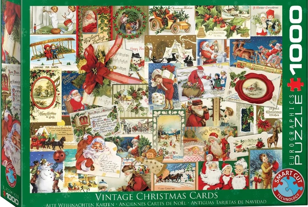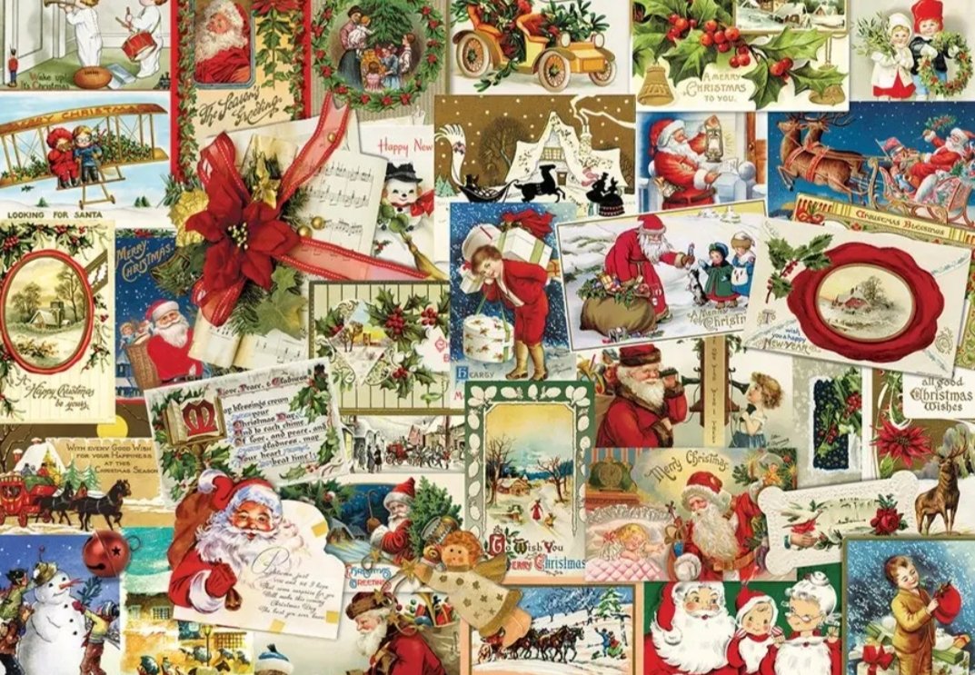 1000-palainen palapeli, jossa kuvina vanhoja joulukortteja.