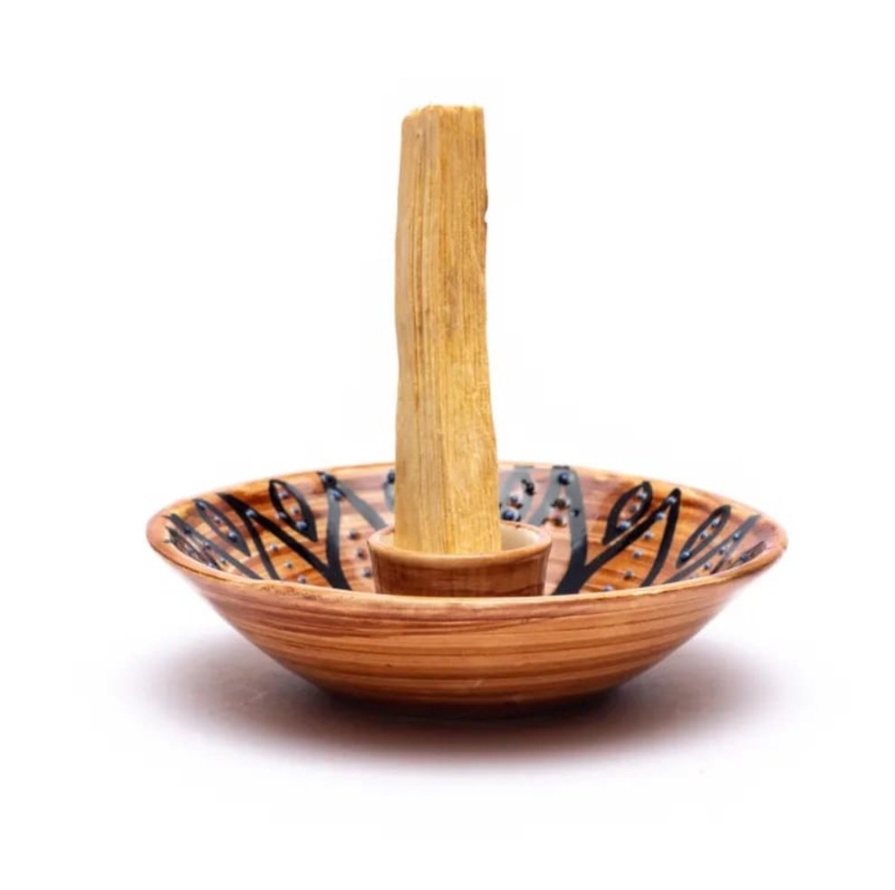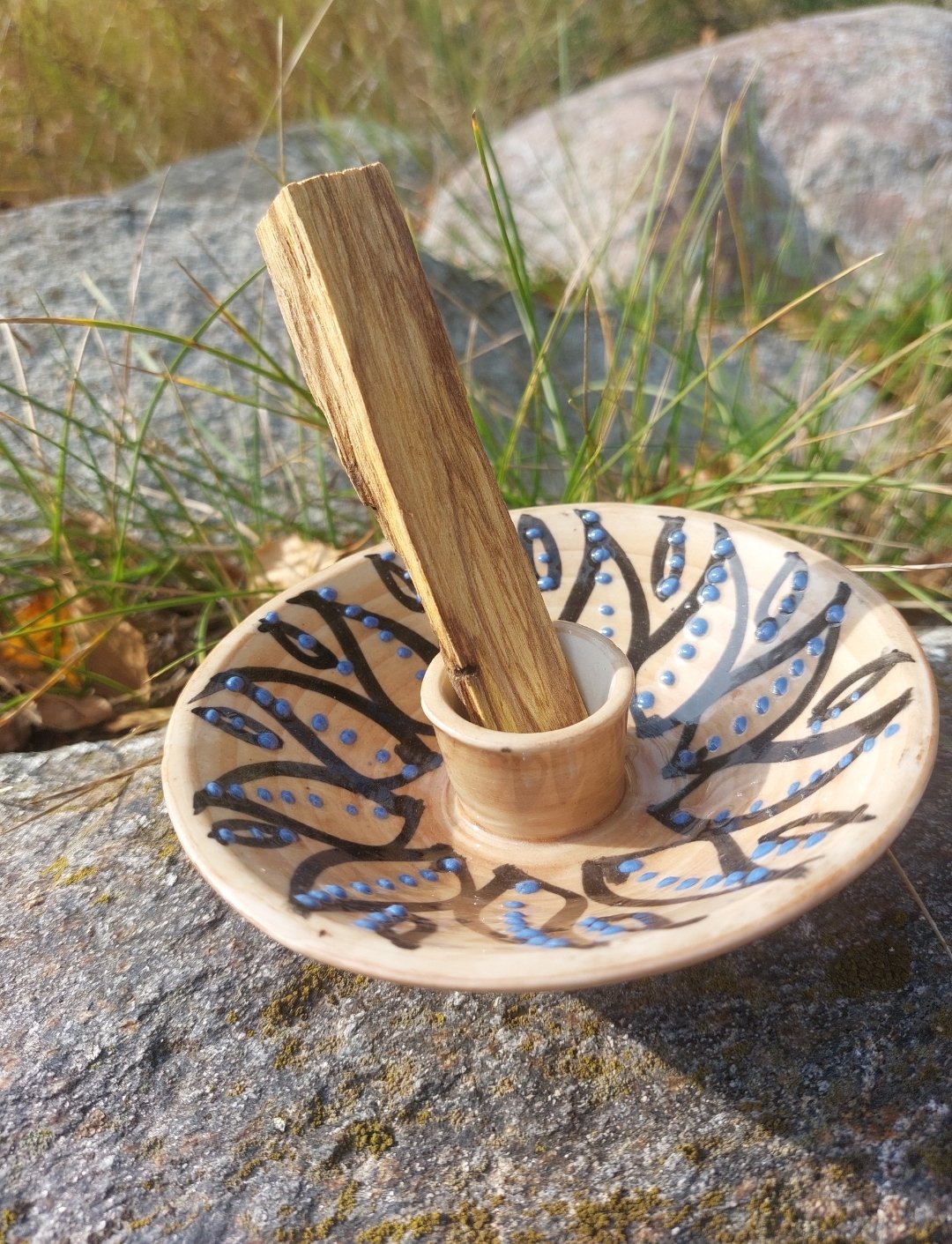 Kaunis ruskeasävyinen keraaminen pidike Palo Santo tikuille.