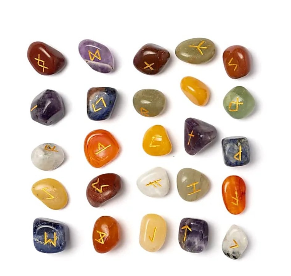 Riimujen kivet ovat: ametisti, valkoinen sateenkaari kuukivi, sodaliitti, vihreä aventuriini, keltainen aventuriini, punainen jaspis, karneoli.
