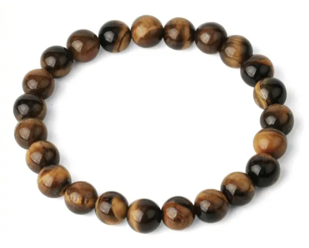 Joustava rannekoru tiikerinsilmä kivillä. Kivet noin 8mm. Sisämitta noin 6cm.